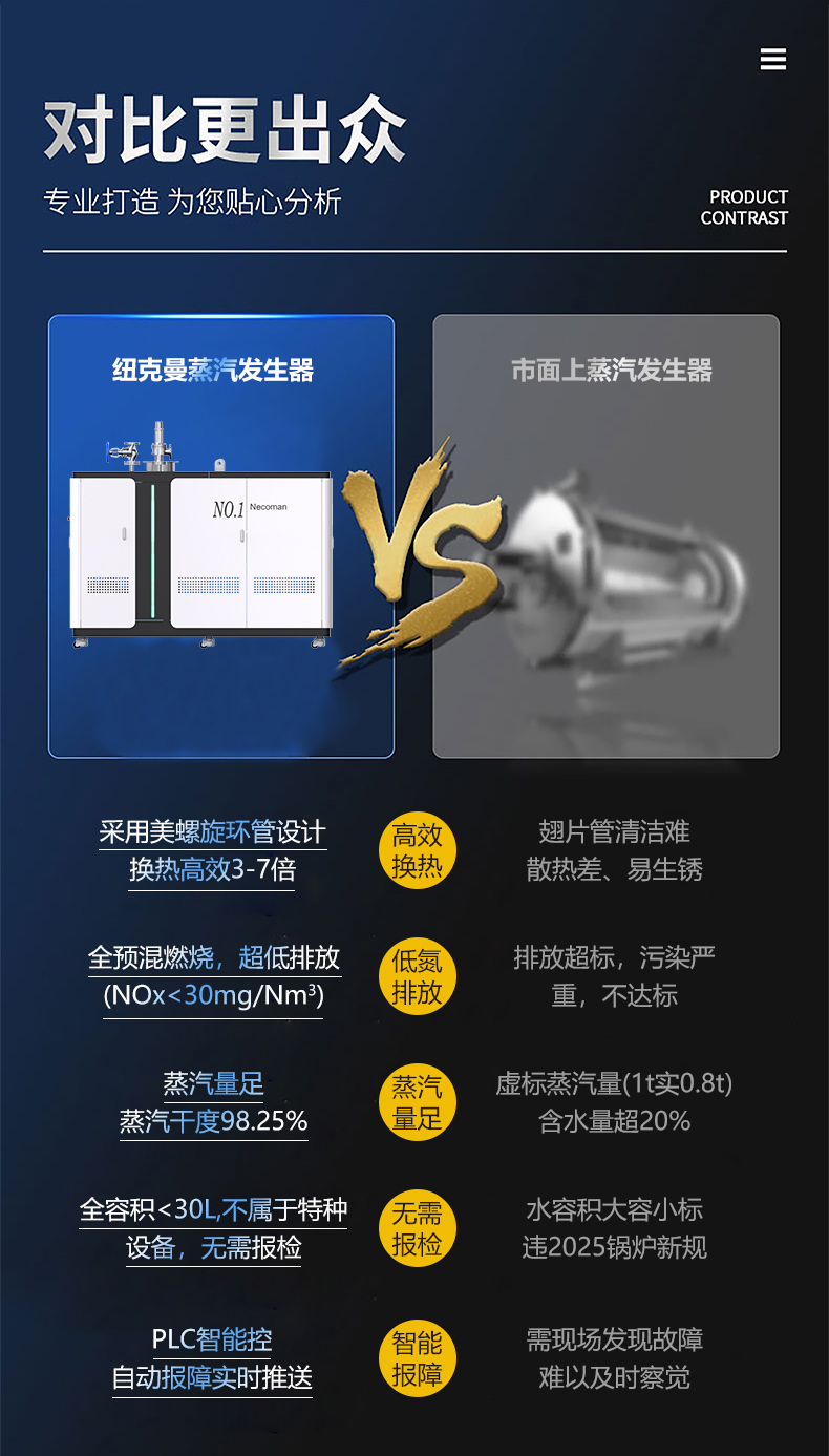 蒸汽量:50kg至6T,無(wú)內(nèi)膽,水容積<29L、產(chǎn)汽快、免報(bào)檢,低氮燃燒NOx排放<22mg/m3,符合環(huán)保要求,310S不銹鋼過(guò)流件直流環(huán)管結(jié)構(gòu),達(dá)到衛(wèi)生級(jí)別,溫度、壓力、可定制,更多參數(shù)可致電15323300918...