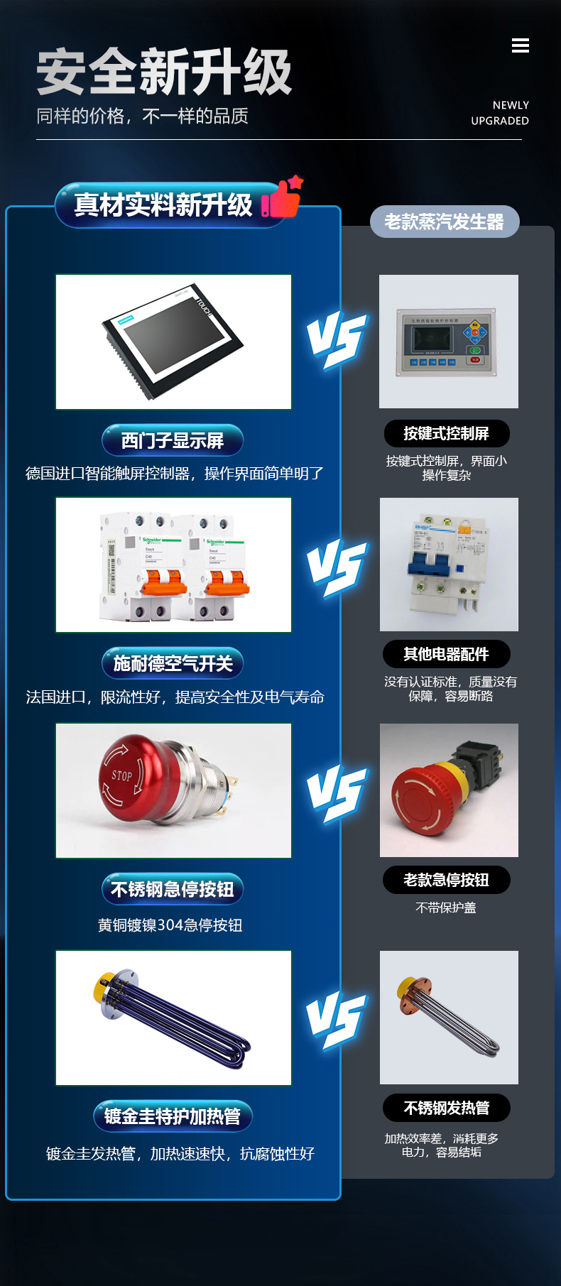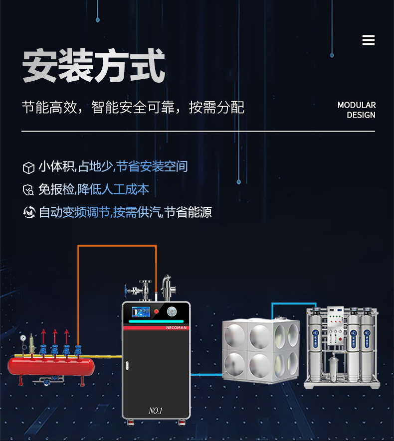 積木式自由組合,按需供氣;蒸汽量:6kg至6T;幾何容積小于30L,無需報(bào)檢;獨(dú)特汽水分離器蒸汽干度高達(dá)99%;溫度、壓力、可定制,更多參數(shù)可致電15323300918...