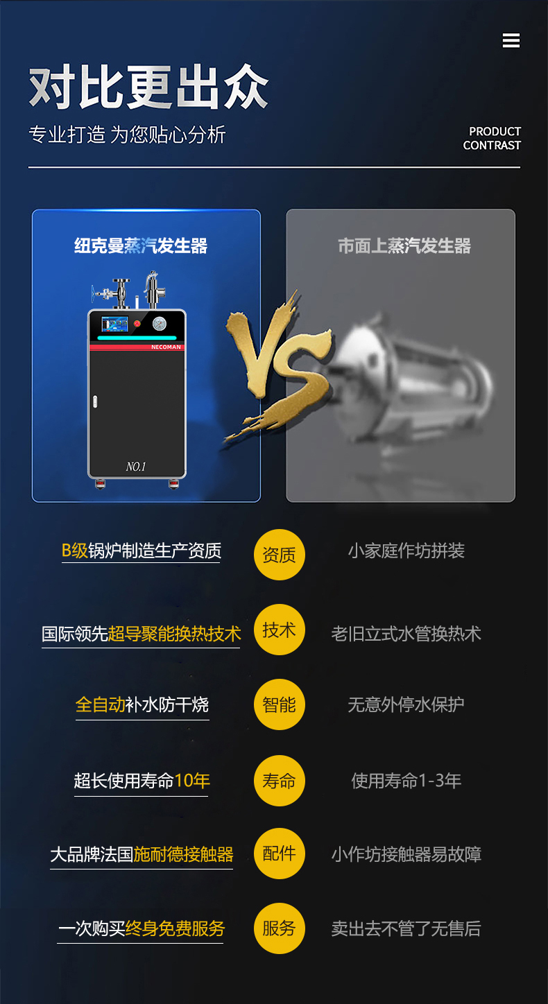 積木式自由組合,按需供氣;蒸汽量:6kg至6T;幾何容積小于30L,無(wú)需報(bào)檢;獨(dú)特汽水分離器蒸汽干度高達(dá)99%;溫度、壓力、可定制,更多參數(shù)可致電15323300918...