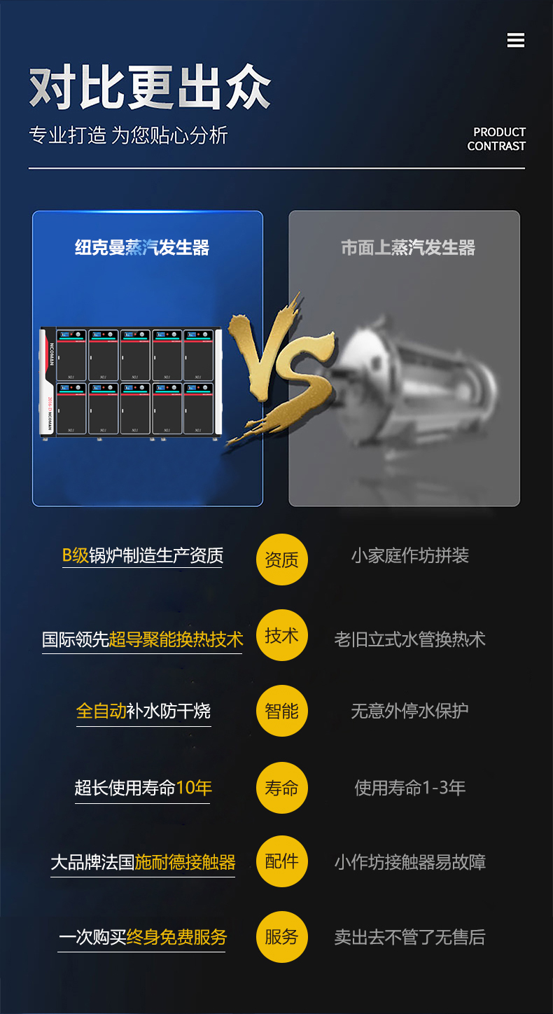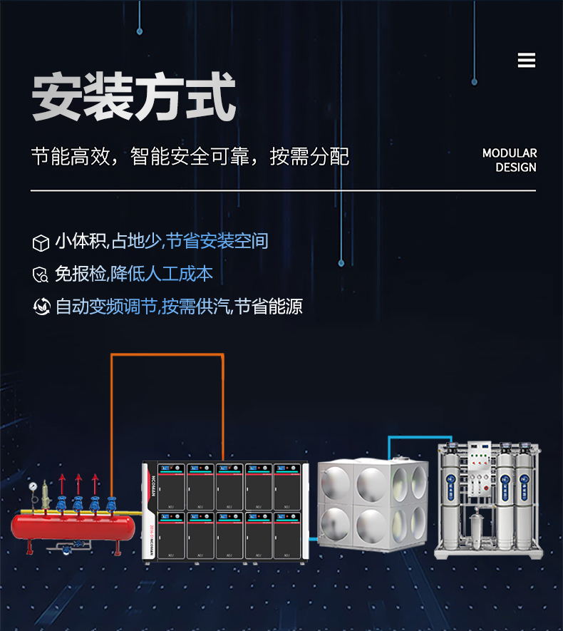 積木式自由組合,按需供氣;蒸汽量:6kg至6T;幾何容積小于30L,無(wú)需報(bào)檢;獨(dú)特汽水分離器蒸汽干度高達(dá)99%;溫度、壓力、可定制,更多參數(shù)可致電15323300918...