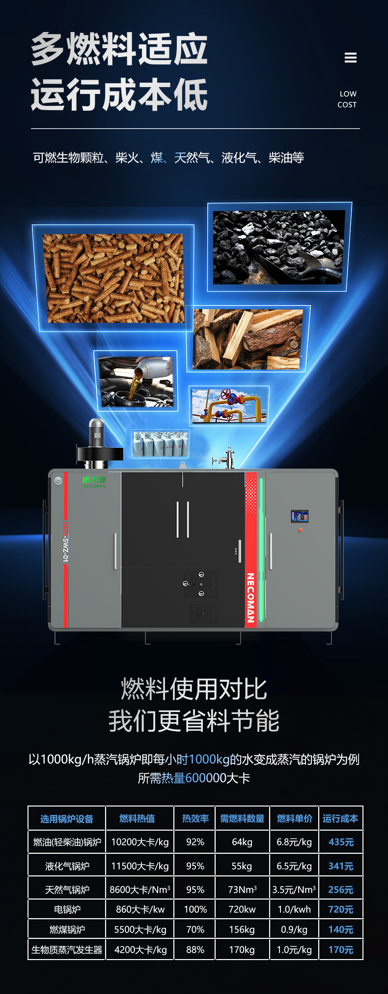 蒸汽量:6kg至6T;適用燃料:天然氣、油、生物顆粒;幾何容積<30L,免監(jiān)檢;大爐門設(shè)計(jì),可燃木塊等木質(zhì)燃料,排煙溫度低、搭配多回程蛇形設(shè)計(jì),壽命長,自主研發(fā)預(yù)制板結(jié)構(gòu),節(jié)省燃料;溫度、壓力、可定制,更多參數(shù)可致電15323300918...