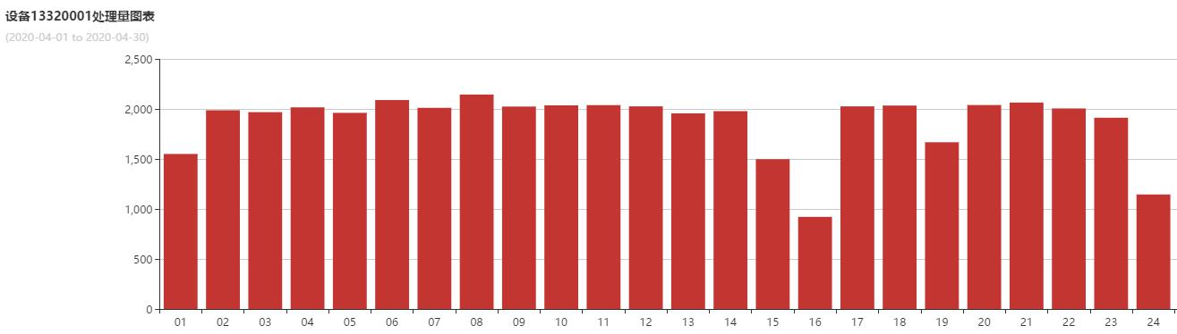 NC3000機實際日處理在2.2噸左右,從下圖4月1日到24日處理量來看,運行正常。